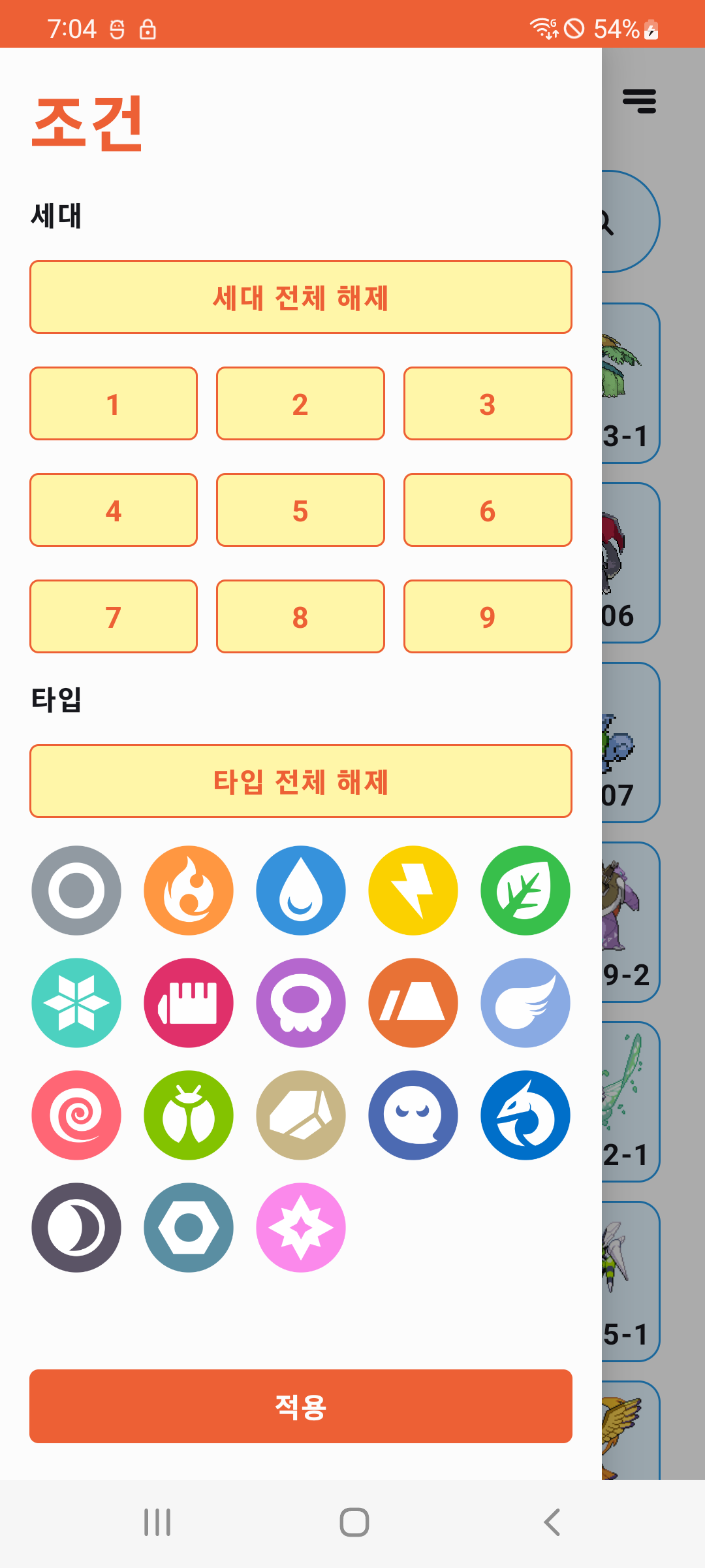 gridItems를 통해 All과 1 ~ 9세대에 해당하는 버튼을 그리드 형식으로 버튼을 표시하고 클릭 시 해당 값을 가지고 상세 화면으로 이동하게 됩니다.