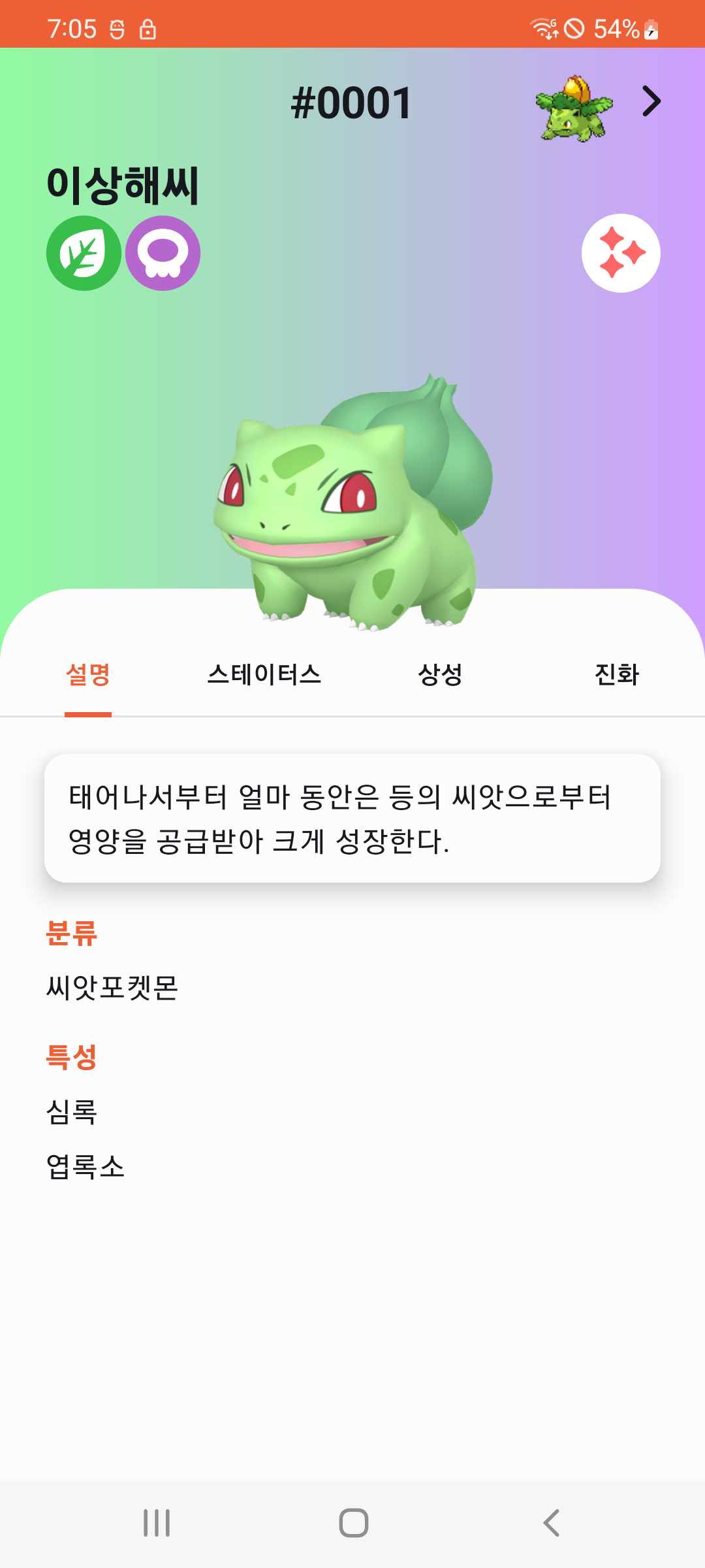 진화 타입의 이미지 역시 위와 동일한 방법으로 EvolutionTypeTable에가 가져옵니다.