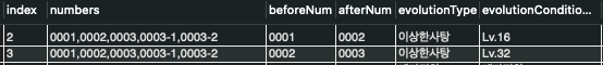 그런데 진화 전과 진화 후 2개의 이미지가 각각 필요하므로 하나의 테이블을 참조할 수는 없습니다.