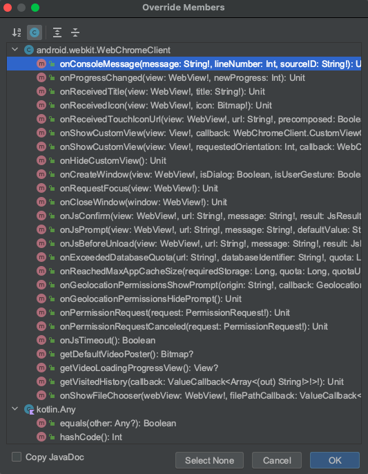 이 두 가지 외에도 WebChromeClient에서는 다양한 기능을 제공하고 있습니다.