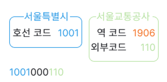 앞 4자리는 호선 코드를, 뒤에 6자리는 외부 코드 및 여백으로 0이 들어갔다고 생각됩니다.