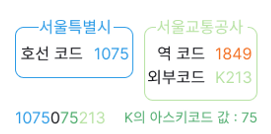 하얀색 표는 서울특별시에 제공하는 실시간 도착 정보를 제공하는 api에서 사용하는 코드이고