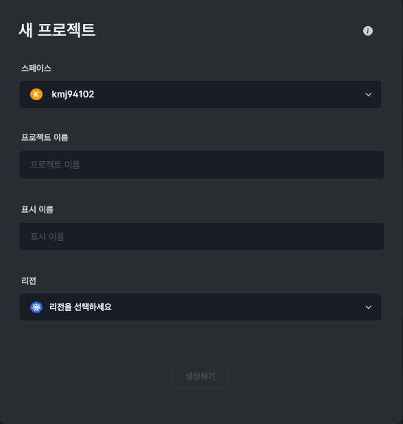회원 가입이 완료 되었다면 새 프로젝트를 생성합니다.