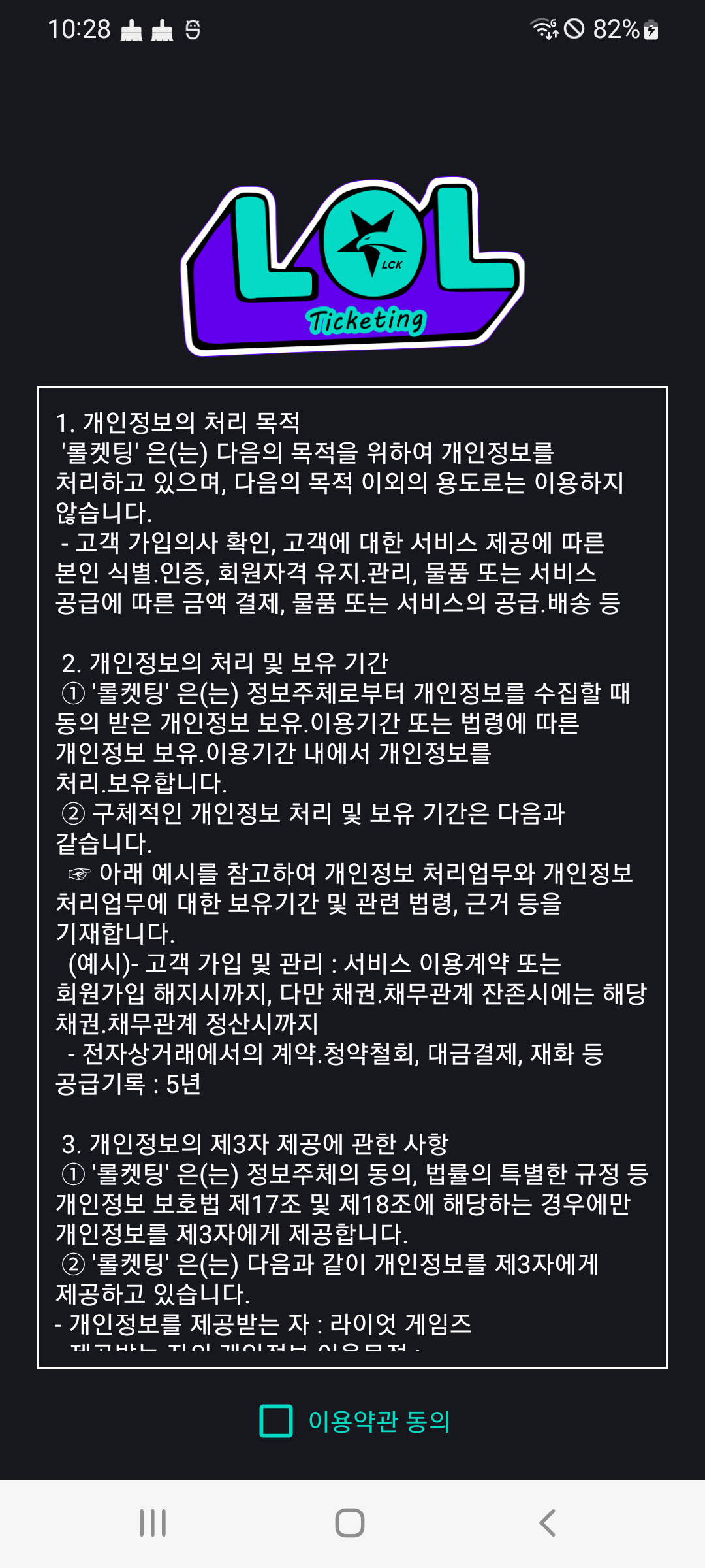 상세 페이지에서 약관동의 하고 닉네임과 선택사항으로 전화번호, 주소를 입력 받습니다.