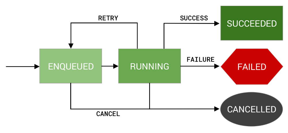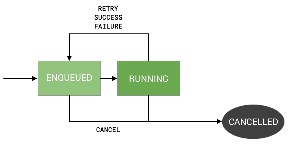 상태 다이어그램을 보면 주기적 반복 실행 방식의 경우 CANCLLED의 상태 값만 있습니다.