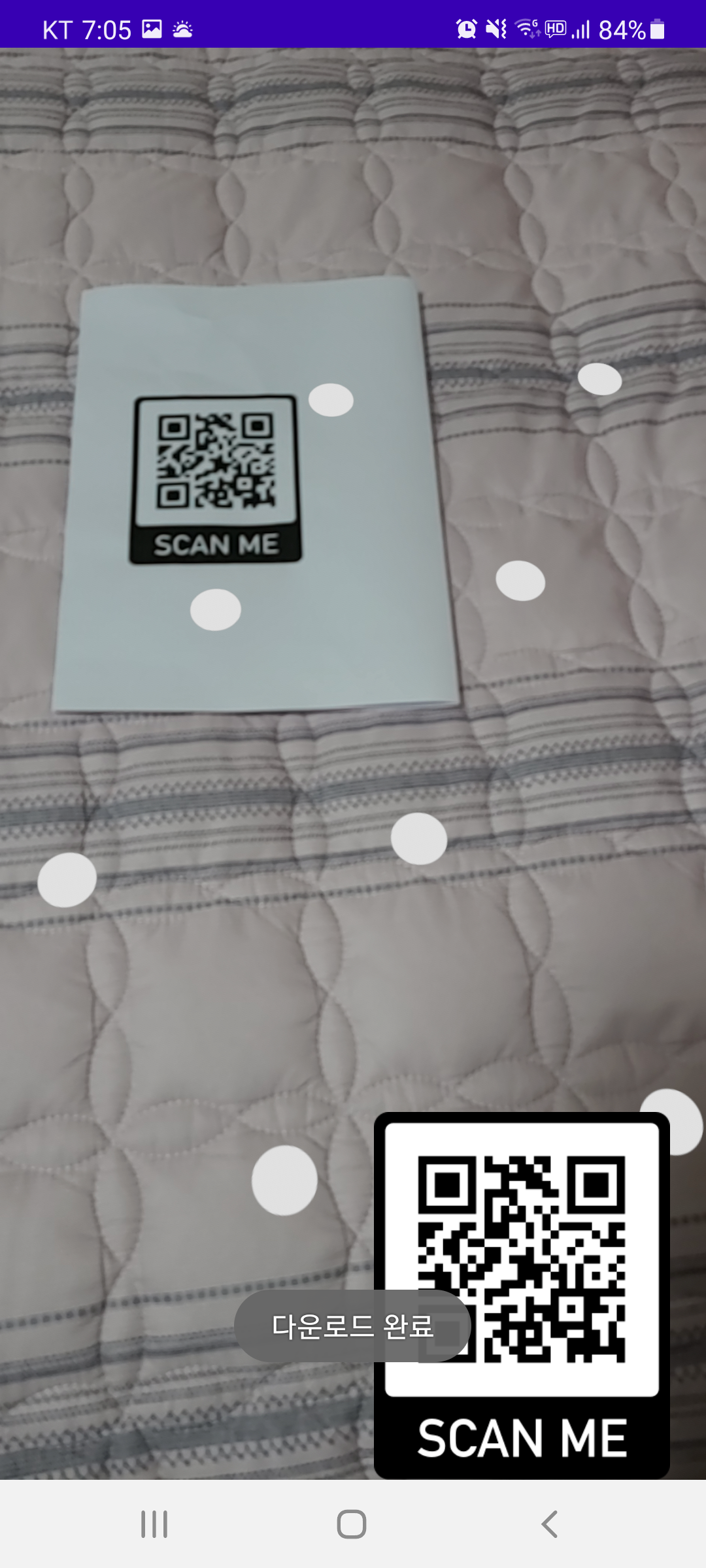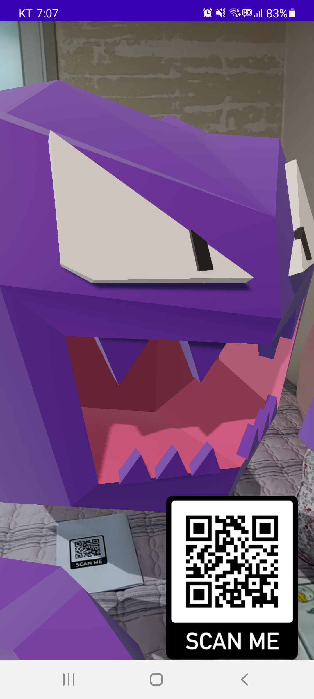 augmentedImage가 추적 중 데이터베이스에 저장된 "qr"과 3D 모델이 나오도록 설정했습니다.