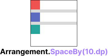 Arrangement는 배치를 결정하는 요소로 Top, Center, Bottom, SpaceEvenly, SpaceBetween, SpaceAround, spaceBy가 있습니다.